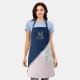 Modern elegant navy blue marble monogram apron