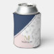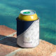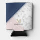 Modern elegant navy blue marble monogram can cooler