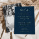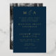 Celebrate your special day with this minimalist modern wedding invitation featuring your monogram initials and wedding details in stunning gold foil lettering. Elegant calligraphy script accents add a timeless and romantic touch to the design. The rich navy background can be personalised to any colour of your choice, perfectly complementing your wedding palette. Plus, this unique foil invitation reverses to showcase your vertical engagement photo, creating a beautiful keepsake for your guests. Personalise yours today for a chic and unforgettable invite!
