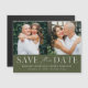Announce your wedding date with this stylish, modern photo save the date magnet. The design features two of your favourite engagement photos with "Save the Date" displayed below in white serif and script fonts against an olive green background. Personalise the save the date photo magnets by adding your names, date, and wedding location. The simple save the date magnets are perfect for any wedding theme.