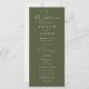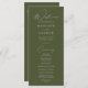 Elegant wedding program featuring a modern white calligraphy script with an olive green background to create a design that is perfect for weddings of all styles and seasons. Personalise the front of the modern wedding program with your names, wedding date and location, and order of the ceremony. The simple olive green wedding program reverses to display a list of your wedding party. The design was created to coordinate with our Modern Elegance wedding collection.