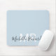 Modern elegant pastel blue monogram script mouse pad. Simple, clean monogrammed personalised desk mouse pad with your initials and name. Font and text colours are fully customisable.