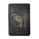 Modern, minimalist black and gold custom personalised name and monogrammed bath mat. It features a monogram initial in serif style font and a pretty handwritten first name text template in gold, white colour on black background. Great feminine, girly personalised gift. If you need help or matching items, please contact to me.