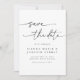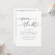 This is a modern minimalist, simple save the date nvitation featuring a serif font and swooping calligraphy font. This elegant wedding invitation comes with an optional backside where you can display your own special photo. Edit all wording except for the "and" & "save the date" on this invitation. All colours are also editable.
