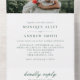 A modern and elegant minimalist wedding all in one invitation which you can personalise. It features a classic and elegant script font and a sage green theme. Place your photo and edit the wedding details to your liking.