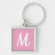 Modern Elegant Pink and White Monogram Key Ring