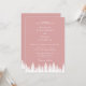 Capture the rich elegance of a winter wedding with this pink invitation, perfect for a wedding celebration. Featuring a dusty rose pink background and delicate white pine tree silhouettes, this invitation embodies sophisticated charm for a winter wedding. Ideal for couples seeking a warm, contemporary aesthetic, it blends woodland beauty with refined script typography for a polished touch. Whether you’re planning an intimate winter gathering, a modern barn celebration, or a stylish forest-inspired event, this invitation beautifully sets the stage for a memorable winter wedding. This custom modern wedding design can easily be personalised with your own wedding details.