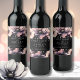 Modern Elegant Pink Black Floral Wedding Wine Label