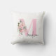 Modern Elegant Pink Floral Initial Name Monogram Cushion