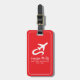 A simple, modern and elegant design with a stylised aeroplane on red background colour, personalised with the traveller name and custom words "new travel adventures".