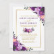 Watercolor Purple Ultra Violet Floral and Gold Wedding Invitation Card includes purple flowers and botanical greenery. Photo Back.