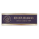 This luxurious name tag design features a rich, deep plum purple background elegantly bordered by shimmering gold accents. Your custom logo is prominently displayed in a sophisticated gold tone, complementing your name and title, which are presented in a refined and easily readable font. This design offers a distinguished and modern aesthetic, perfect for making a memorable professional statement.