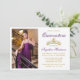 Modern Elegant Quinceanera Invitation with Gold Crown and Photo - Purple