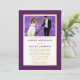 Modern Elegant Minimalist Photo Purple and White Wedding Invitation. Gold Frame. Gold Script.