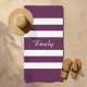 Personalised Modern Elegant Purple Stripes Pattern Name Beach Towel.