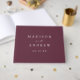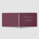Elegant wedding guestbook featuring your names and wedding date in white lettering with a purple background. Personalise the spine of the simple wedding guest book with your married name and wedding date.