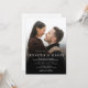 Elevate your wedding invitations with our elegant modern design featuring a black shade undertone and simple minimalist calligraphy script. This stylish photo invitation includes a cute heart photo on the back and a convenient QR code linked to your wedding website for easy RSVPs. Perfect for adding a touch of sophistication and personalisation to your special day.