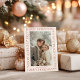 This polished holiday layout pairs a soft modern serif font in editable red wrapping your photo in festive words like Merry Christmas, Grateful, and Joy. It feels timeless yet fresh, perfect for families who want something elegant without losing personality. Add your names and upload your picture to create a sentimental keepsake that looks beautiful on any mantel. Ideal for winter portraits, snowy photos, or neutral-toned sessions.