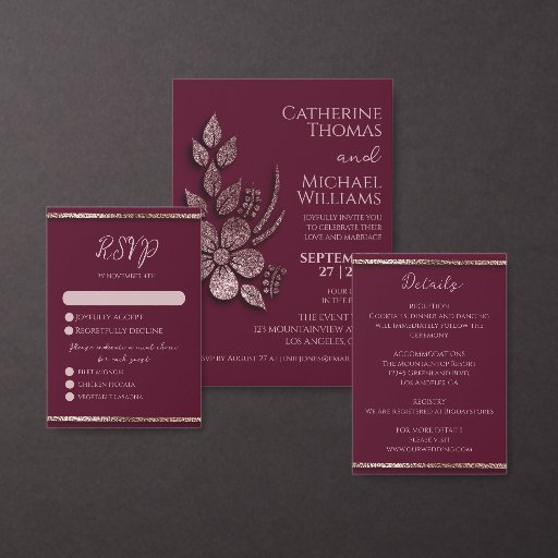 Modern Elegant Rose Gold Glitter Floral & Burgundy design.