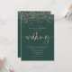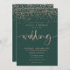 Modern elegant simple rose gold foil confetti and emerald green wedding script