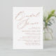 Simple bridal shower invitations featuring "Bridal Shower" displayed in a rose gold foil calligraphy script. Personalise the rose gold foil bridal shower invitations with the bride-to-be's name and shower details below. The modern bridal shower invite reverses to display a solid white background.