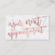 Modern elegant rose gold script typography white marble with your next appointment written in a modern and stylish script calligraphy. Perfect for beauty salon, hair stylist and makeup artists.