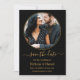 Modern Elegant Round Photo Frame Black Gold Save The Date