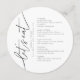 This is an elegant modern minimalist wedding menu featuring a beautiful calligraphy font and a simple serif font. All colours are editable, but the words "let's eat" are not editable. // For matching items, please visit the "OLIVIA" collection in the Sincerely By Nicole Zazzle store. * If you like this design but don't see it available for something you are looking for, please reach out to me any time :)