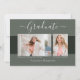 Beautiful 2 photo 7"x5", graduation announcement cards. Featuring modern text with elegant calligraphy script. Your photos are thinly edged with light grey trim for that extra "Pop". The design is complimented with regal background shades of sage green. The back of the card offers a personalised announcement text space for that special graduate. To see more items like this, visit my store here at "www.Zazzle.com/LakeViewCardCo". Thanks