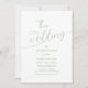 The front design shows a unique elegant wedding invitation in sage green typography and calligraphy with white background.The back design shows a customisable couple image with couple name initials. The invitation is classic and unique and will be one of the bests for your wedding.