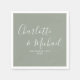 Featuring signature style names, these elegant sage green napkins can be personalised with your names in chic white lettering. Designed by Thisisnotme©
