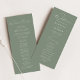 Elegant wedding program featuring a modern white calligraphy script with a sage green background to create a design that is perfect for weddings of all styles and seasons. Personalise the front of the modern wedding program with your names, wedding date and location, and order of the ceremony. The simple sage green wedding program reverses to display a list of your wedding party. The design was created to coordinate with our Modern Elegance wedding collection.