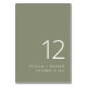Modern and elegant table number featuring sage green modern typography table number. Great for weddings or your next special occasions.