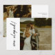 Modern Elegant Script 2-Photo Wedding 'We Eloped' Announcement Card. Add bride and groom names to the front, and customise with 2 of your favourite wedding photos to the front and back of this minimalistic, 'just married' wedding elopement card.