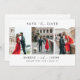 A modern and simplistic wedding save the date card, designed with script lettering, and 3 customisable photos. Personalise with your future wedding info on the front and back of the card.