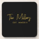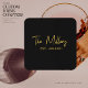Create a unique gift with these elegant black and gold beverage coasters featuring the family name and established date. Ideal bridal shower, engagement or anniversary gift for a newlywed couple.