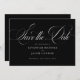 Modern Elegant Script Black and White Save the Date features a large, bold script and elegant styling.
