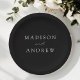 The elegant, personalised black and white wedding paper plates are perfect for your wedding reception, rehearsal dinner, engagement party, and more! The minimalist black and white wedding plates are perfect for summer, fall, winter, and spring weddings. The design features a chic modern calligraphy script with your names in white lettering on a black background. The design coordinates with our Modern Elegance Black and White wedding collection.