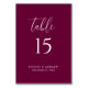 Modern Elegant Script Burgundy Wedding Table Number. This minimalist elegant design features boldly written table number, bride and groom's names and date of wedding on olive green background. Personalise it with your information. View the matching collection.