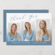 This modern elegant 3 photo graduation "Thank You" card, features design elements of modern text fused with elegant calligraphy script. Your grad photos are displayed on the front of the card while the back of the card offers personalised text space for a thank you message or can be left blank if you wish to handwrite your message. A stylish white gradient fades to a beautiful dusty blue or easily customise the blue to a colour of your choice.