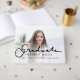 Modern graduation photo guestbook featuring a calligraphy Graduate script on a white gradient background that will make the text pop. Suitable for the high school or college graduate.