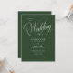 Modern Elegant Script Green Wedding Invitation features a large, bold script and elegant styling.