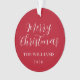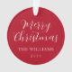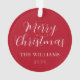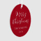 This stylish minimalist, modern, Christmas ornament features elegant modern calligraphy script in white with red background.