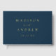 Elegant wedding guestbook featuring your names and wedding date in gold foil lettering with a navy background. Personalise the spine of the simple wedding guest book with your married name and wedding date. The back of the navy and gold foil wedding guest book displays your horizontal photo.