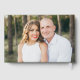 Elegant wedding guestbook featuring "Mr. and Mrs." displayed in a modern gold foil calligraphy script with an olive green background. Personalise the front of the simple wedding guest book with your last name and wedding date. Add your married name and wedding date to the spine of the photo guest book. The back of the olive green and gold foil guest book displays your horizontal engagement photo.