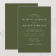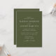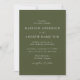 This elegant wedding invitation features the couple's first and last names and wedding details in crisp white lettering set against a rich olive green background. Modern calligraphy script accents add a touch of timeless sophistication to the design, creating a look that is both stylish and natural. Perfect for weddings in any season, this invitation is ideal for couples seeking a refined, classic, and organic aesthetic for their special day.