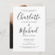 Featuring signature style names, this elegant, modern, simple black and white engagement party invitation can be personalised with your information in chic, stylish typography and photo on the reverse. Designed by Thisisnotme©