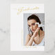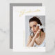This real foil, modern elegant graduation announcement card, features design elements of modern text fused with elegant calligraphy script. The graduates horizontal photo is artfully placed on the front of the card while the back of the card offers personalised text spaces for information about the graduation and future journey. Backgrounds are white on the front and silver grey on the back or easily customise them to colours of your choice. To see more items like this, visit my store here at "www.Zazzle.com/LakeViewCardCo". Thanks