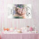 This elegant black script graduation banner features your favourite grad's photo under a trendy swirly calligraphy font, combined with your graduate's name, school, year of, and degree details in classic, timeless modern typography. Perfect for a graduation party or any other celebration to show of all those great senior photos you've taken!
