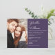 Modern script wedding invitation featuring your 2 special photos and celebration details on a purple background. Designed by Thisisnotme©